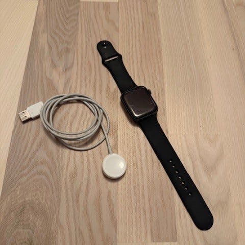 Ur og lader medfølger. DEr er en ridse i skærmen, men den betyder ikke noget i forhold til brug mm