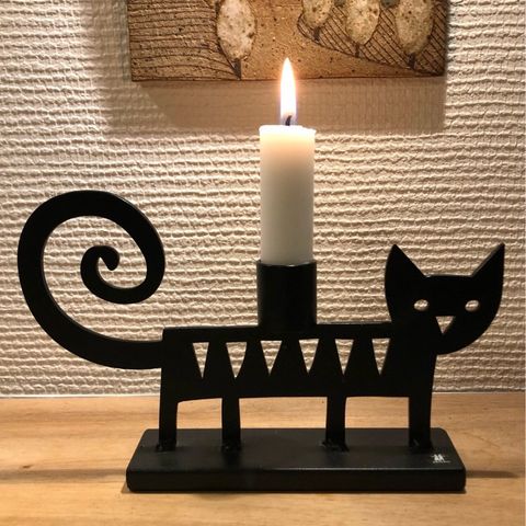Lysestage, Bengt & Lotta, Skøn tung katte lysestage i jern, fra de svenske designere Bengt & Lotta.