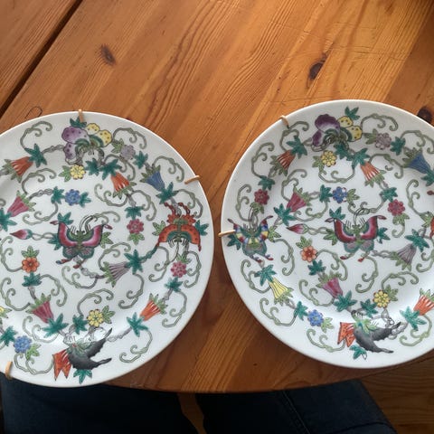 Porcelæn, Flad tallerken, H Fine Chine, Made in China, Har denne ene flade tallerken, med blomster i sarte faarver.