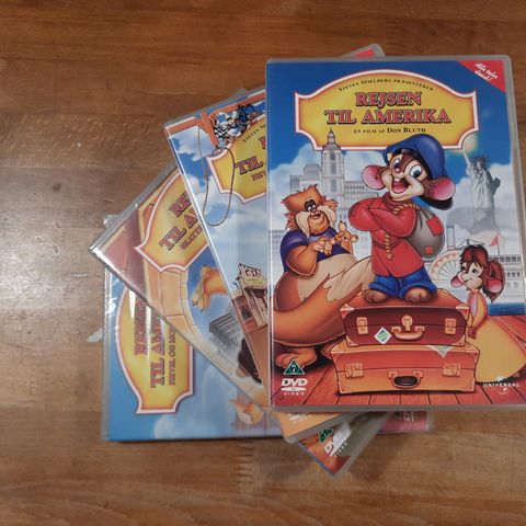REJSEN TIL AMERIKA 1-2-3-4, instruktør Don Bluth, DVD, tegnefilm, Pr stk 49,-