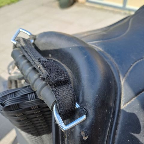 Ponysadel, 17 tommer, Udstyr: grundet ophør hestehold sælges div. udstyr. bl.a. ponysadel med gjord og sikkerhedsbøjler. (gummi defekt) en stigrem defekt. måler 41 cm fra for til bag. kr 500,- flere sadelunderlag fra kr. 25. lammeskind under sadel.17" (ca. 52cm) kr. 50- .. mange forskelige bid, (stor hest) ridedækken; hovedtøj; fortøj; bandager. m.m. evt. forsendelse