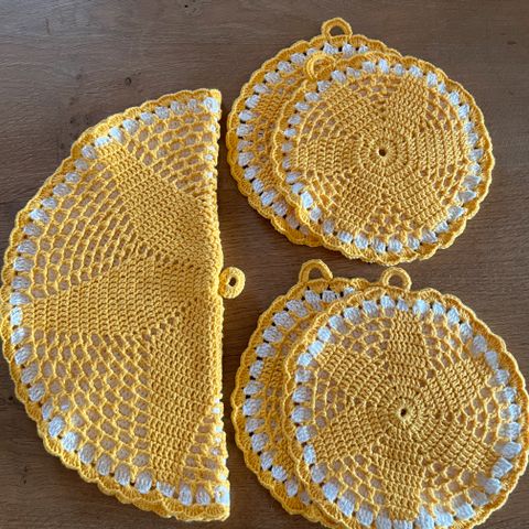 Nye, ubrugte grydelapper, hæklet i 100 % bomuldsgarn.