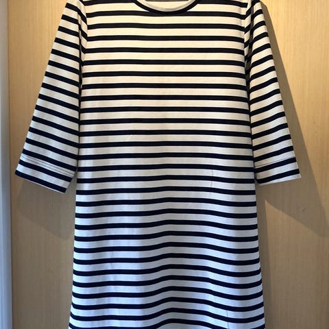 Sweatshirt-kjole, Stig P, str. S, Beige med striber, Ubrugt, Kjole med blå striber, str. S, Stig P, blød kvalitet, aldrig brugt. (650). Kan sendes