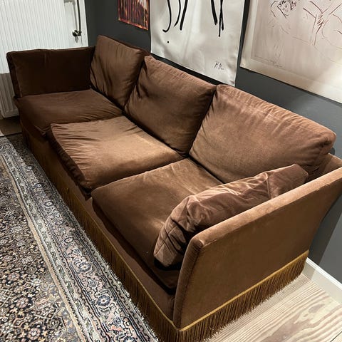 Sofa, 3 pers., OLDEMORS ANTIKKE SOFA MED LØVEFØDDER PÅ DE FORESTE BEN, BLIVER NU SOLGT. HAVDE TÆNKT MIG AT OMBETRÆKKE DEN MEN IKKE FÅET DET GJORT. FORSTIL DIG SOFAEN MED DET FEDESTE TRICIA GUILD STOF - LÆNGDE 205, DYBDE 66, HØJDE 89, SÆDEDYBDE 50 - SÆDEHØJDE 42