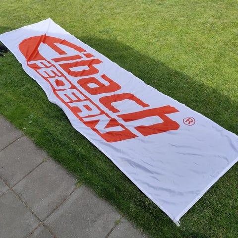 Stofflag med JAGUAR RACING logo, Jaguar, Stort stof-flag (100 x 130 cm) med JAGUAR RACING logo, monteret i flot glasramme.