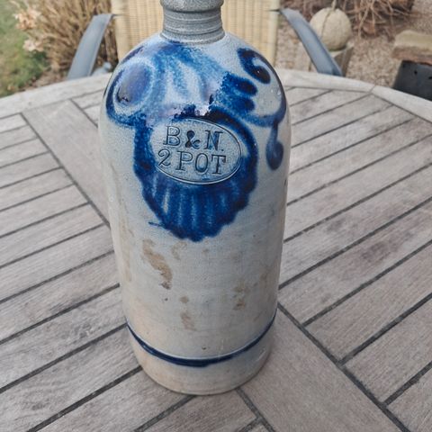 Stentøj, Brændevinsdunk, Gammel, saltglaseret brændevinsdunk. Højde 25 cm. Saltkarrene er solgt.