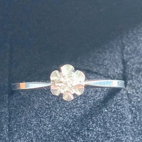Ring, guld, Fin hvidgulds ring med blå og hvide sten. Ikke diamanter. Stemplet BEE, 333.