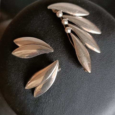 Broche, sølv, HU Sterling Handmade, Smuk stilren vintage broche