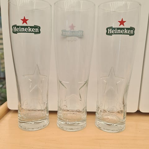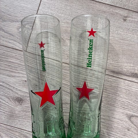 Glas, Fodboldglas, Fidbolddrikkeglas HEINEKEN med landelogoer og ciceleringer og kraftig bund 0,25L højde 18cm vægt pr glas 300gram 4stk absolut samlet fast pris kan ikke forhandles eventuelle henvendelser om prisreduktion besvares ikke kr200. Lbagvægvgumminisser. igg