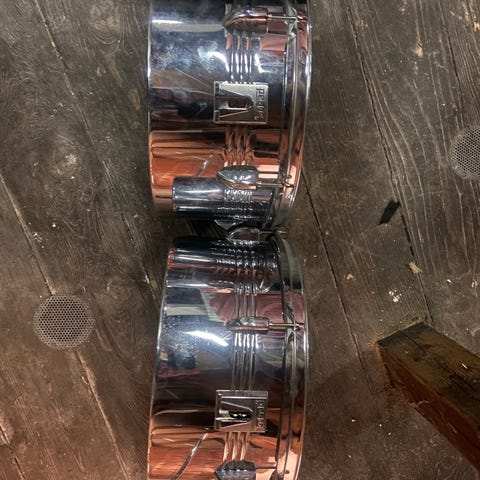 NY PRIS: 1000 kr. Nedsat fra 1400 kr. til 1100 kr. 13´´ og 14´´ VINTAGE - MESSING, Sælger disse 2 vintage Premier Timbales - uden stativ.