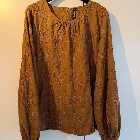 Bluse, Solemate, str. 42, Viskose, Ubrugt, Soulmate bluse i L, overvidde 114cm, aldrig brugt med mærke, bindebånd i opsøm, glimmer elastik i Hals og ærmer, farverig og blød. Fra røg og dyre frit hjem.