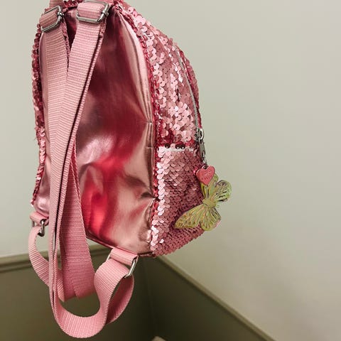 Sjov børnerygsæk med arme og ben fra Superbest i gult stof med plastik øjne og påsyet mund.