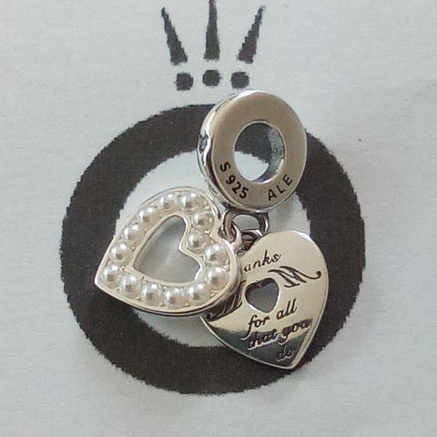Rigtig fin Pandora Charm med vedhæng, musling m/perle med rosa guldbelægning 14 kt.
