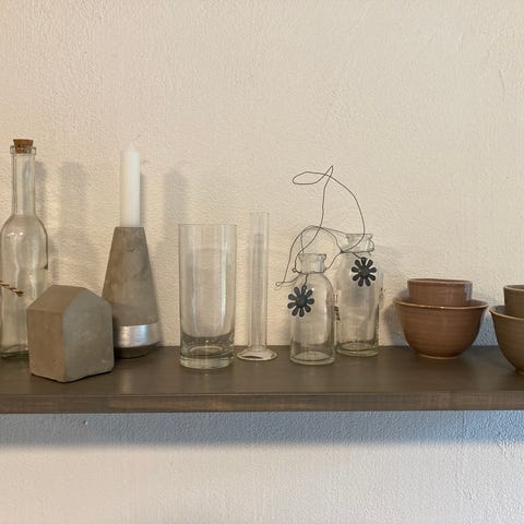 Hylder og knager i "bondehus-stil".