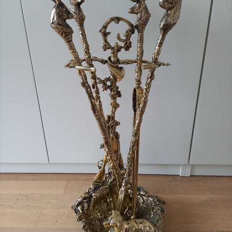 4 kroge samt en krog lavet af udstoppet, vinklet hjortehov/-underben.