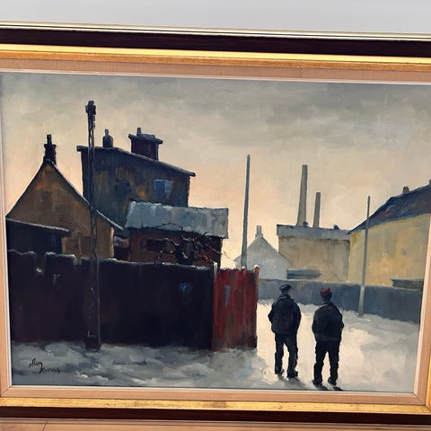 Oliemaleri, Allan Karms, motiv: Andet, stil: Realisme, b: 90 h: 80, Virkelig flot maleri af Allan Karms. Guldrammen er også i flot stand. Maleriet måler 80x90 cm. Uden ramme 60x70 cm.