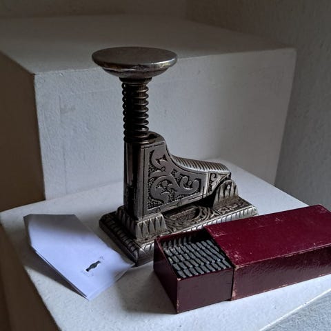 Hvis man ønsker at se hele patentansøgningen på 5 sider + tegninger, findes den på: https://patents.google.com/patent/US2012572A/en. På den ene side står der: Speedway og patent nummeret, på den anden side: “No. 2 Speed Productions Co. Inc, Long Island City, N.Y. Made in U.S.A. Jack Linsky (1897-1982) var stifter af firmaet: Speedway, som også markedsførte den lille røde hæfteklamme maskine “Swingline” som jeg har på anden DBA annonce. Evt søg på: ksø kontor