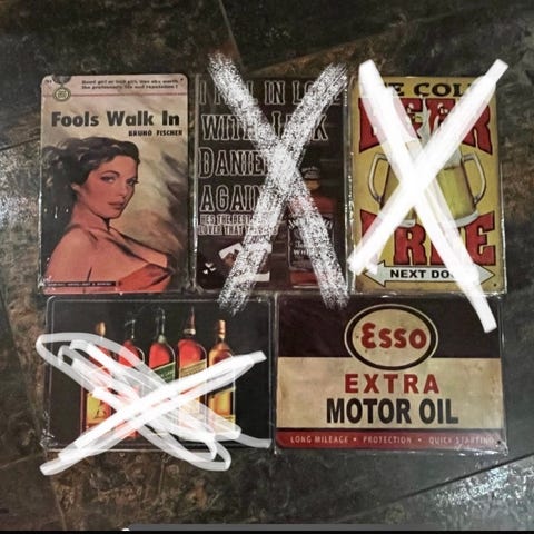 Skilte, gammelt skilt bemalet zink, Unikt håndlavet skilt