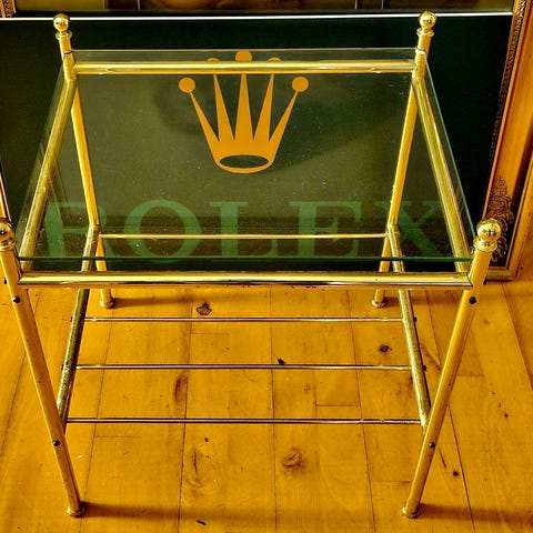 Vintage Sort og Messing bord med Glasplade