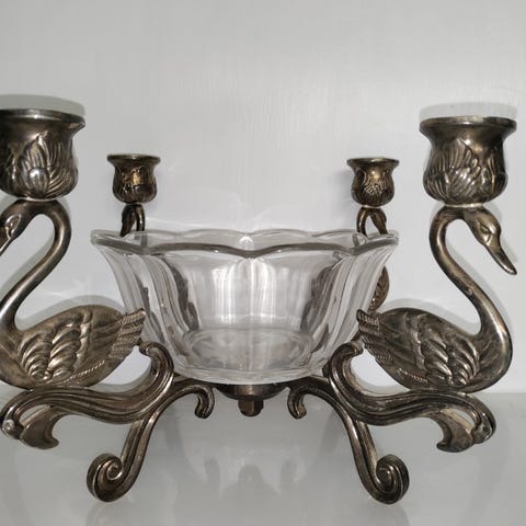 2-armet sølv-lysestage, Trænger til pudsning. Højde 17 cm, br. 23cm