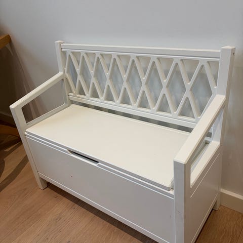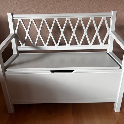 Børnebænk, Cam Cam, Super fin og solid bænk med god opbevaringsplads. Brugsspor fremgår af billederne. Prisen er fast, så bud er ikke nødvendige.