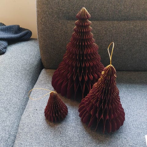 Juletræ, Foldbart papirs juletræ. Højde 40 cm. Pr stk 10kr, 12 stk 100kr. 1ks m 60 stk 300kr
