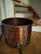 Jeg har tre stykke brænde spande/gryder i kobber jeg skal få solgt. De er købt i Norge i sin tid. Alle tre er i perfekt stand. Se mål på billedet. Giver fantastisk look i stuen. Sælger til 700kr pr stk. Kan sendes med post. 40cm bred.