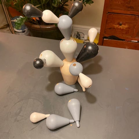 Et spil, hvor det gælder om at bygge træet uden det vælter. Egnet fra ca. 3 år. Fremstår som nyt uden slid, bidemærker eller lignende.