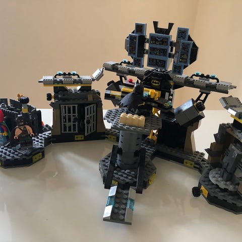 Med Batcave, Batmobilen, Lex Luthors robotkøretøj og en katapult.