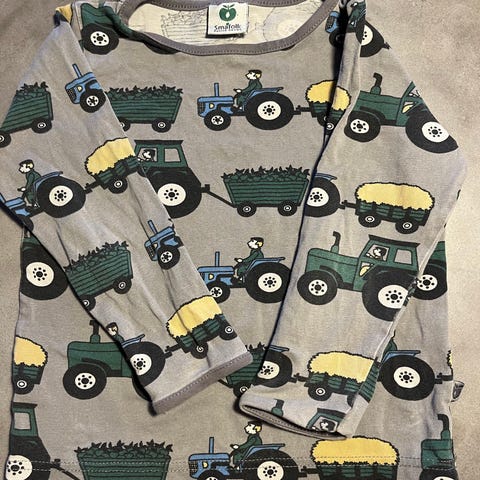 Bluse, Bluse med biler, Småfolk, str. 98, Fin bluse fra småfolk med biler, dog er lille luk ved det ene ærme (se billede 2), derfor den lave pris. Str. 98-104 står der i blusen.