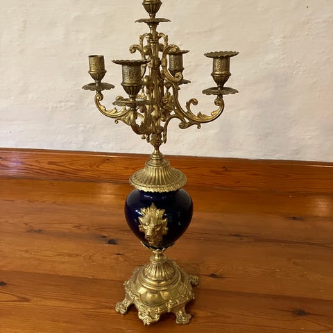 Gammel fransk lysestage sælges , Messing , 100 år gl.
