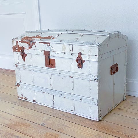 Lille Norsk kiste, b: 34 d: 19 h: 17, Gammel sød lille Norsk kiste sender gerne, fiks og færdig virker ikke her