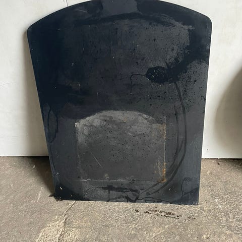Plade, Glas, Flot glas plade til brændeovn med afslebet runde kanter, med lidt brugs ridser.