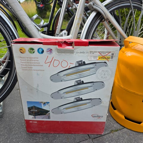 Haws, Terrassevarmer, kan bruges til de fleste parasoller. Er helt ny.