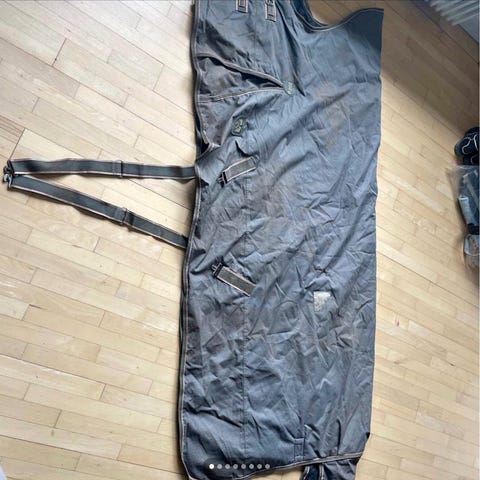Dækken, Gråt dækken med rød og hvid piping, Str. 135 cm. Brugt 2x (for lille til min hest)