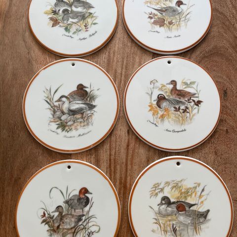 Brugte, men generelt i pæn stand. Ingen har skår, men enkelte har ridser i den brune kant maling.