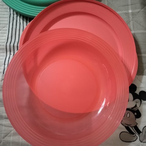 Tupperware tallerken, Tupperware camping, Farverige tellerkner til børne fødselsdagen eller strand turen.