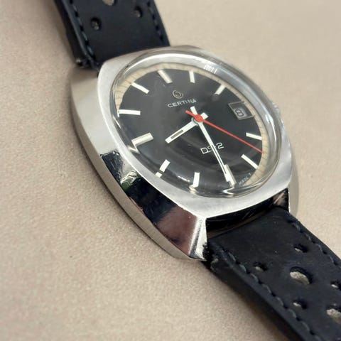 Herreur, Certina, Vintage Certina Automatic President i rustfrit stål fra 1971. Værket er et Certina 25-652, Det er en meget sjælden model med både dato og ugedag. 28 Jewels. Serienummer 8680490 = årg. 1971. Kassen og bagkassen er lavet af rustfrit stål. Uret går som den skal. Cognac brun læderrem, kan skiftes med ny Sort læderrem. Bevæge apparat medfølger, så den altid går, hvis du bruger den lejlighedsvis. Evt. Levering.