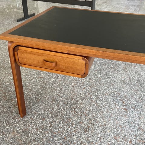 Anden arkitekt, Martin Nyrop skrivebord, Fineste lille skrivebord af fyrretræ, sarg med skuffe, pladen indlagt med grøn linoleum. Fremstillet hos Rud Rasmussens snedkerier. H. 71. L. 94. B. 50 cm. Fremstår med brugsslitage.