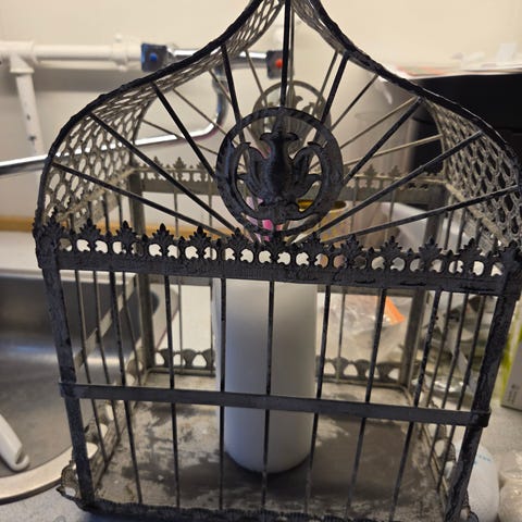 Fuglebur retro, 53 år gl., Smukt og velholdt fuglebur købt fra nyt i Tunesien i 1972. Højde 58 cm, bredde 40 cm. Der medfølger 2 stk. håndlavede rustfri fodertrug samt en rustfri udtagelig bund. Bemærk størrelse. Velegnet som blikfang i kunstbutik. Kan ikke sendes.