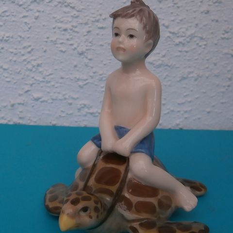 Porcelæn, Figur dreng skildpadde 2003 Millennium retro, Royal Copenhagen, Dreng på skildpadden Millennium kollektion