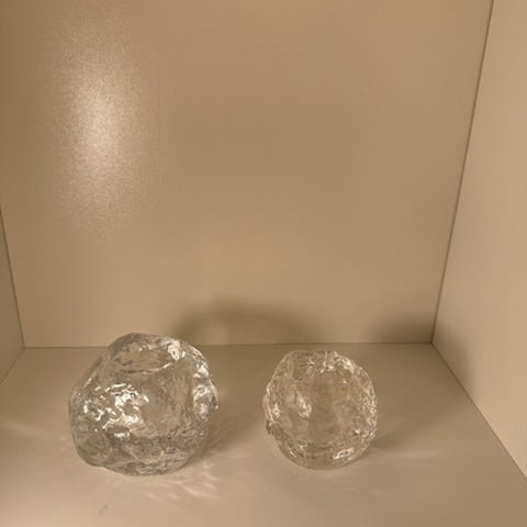 Fyrfadsstage, Kosta Boda Zelda serie, Monica Backström lille sød mat rosa, hvid og grøn vintage fyrfadsstage, så fin med lys i ...