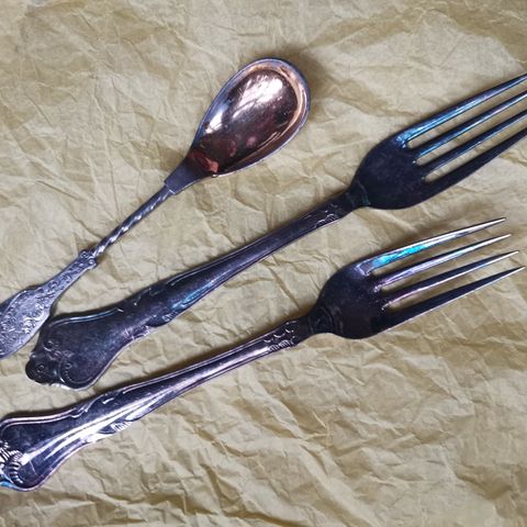 Bestik, Bestik, Atla, Så vidt jeg kan se er der atla og 2 tårnet der er 14 store gafler, 6 mindre gafler 6 meget store suppeskeer og 14 alm spiseskeer, 9 teskeer og så er der 3 ekstra tesseer og 6 knive der følger med, prisen er samlet