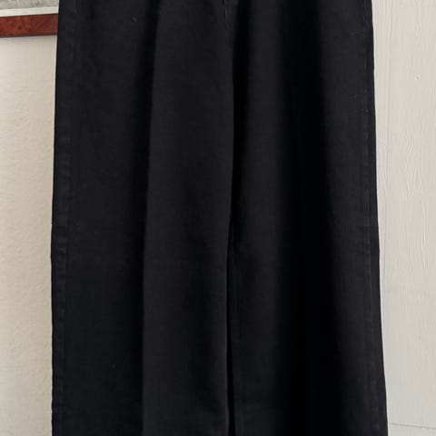 Et par seje bukser med perler og optrævlet syning