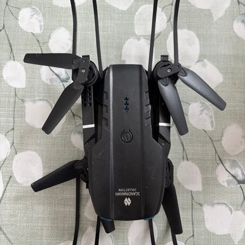 Drone, Ny drone aldrig brugt. Den styres ved hjælp af en app på mobilen.
