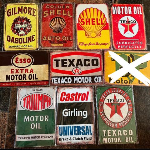 Skilte, MetalSkilt / metal skilt, Texaco motor Oil, Castrol girling universal, Triumph motor Oil.