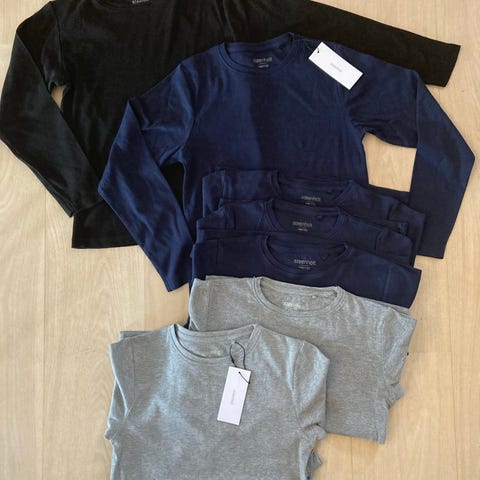 Bluse, Bløde bomuldsbluser, Steenholt, Name it mv., str. 122, Str. 122-128. 4 bløde bomuldsbluser/bomuldstrøjer i turkise og hvide farver. Blandt andet med super populære "Tortenskjold"s hvide tiger. Kan bruges både som bluser i dagligdagen eller som natbluser/nattrøjer. Alle i god stand, bortset fra den helt hvide der godt kunne trænge til lidt klorin og derfor følger med gratis. Den anden hvide (med tryk) er helt ny/ubrugt. Fra ikkerygerhjem uden husdyr. Kan sendes eller afhentes i Nørresundby. Prisen er pr. stk. ved køb af alle tre (plus den hvide gratis). Sendes også enkeltvis til 35,- pr. stk. (den helt nye TortenSkjold dog til 45,-). Yderligere rabat gives gerne ved køb af flere af mine annoncer.