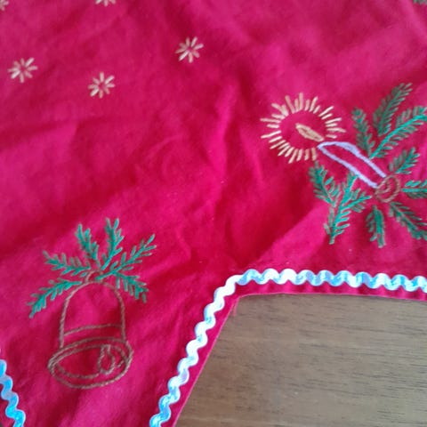Vintage håndbroderet stjerne dug, Ca 61 cm , fra spids til spids .