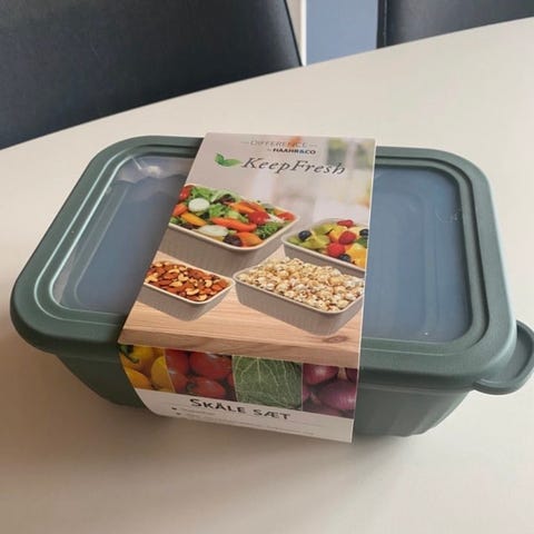 Eller de kan sættes oven på hinanden, så den ene beholder bruges som “låg”