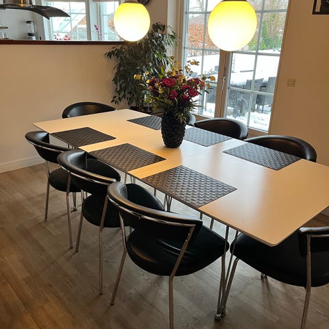 Bordet er ikke nyt og har brugsspor, samt ved tillægspladen.